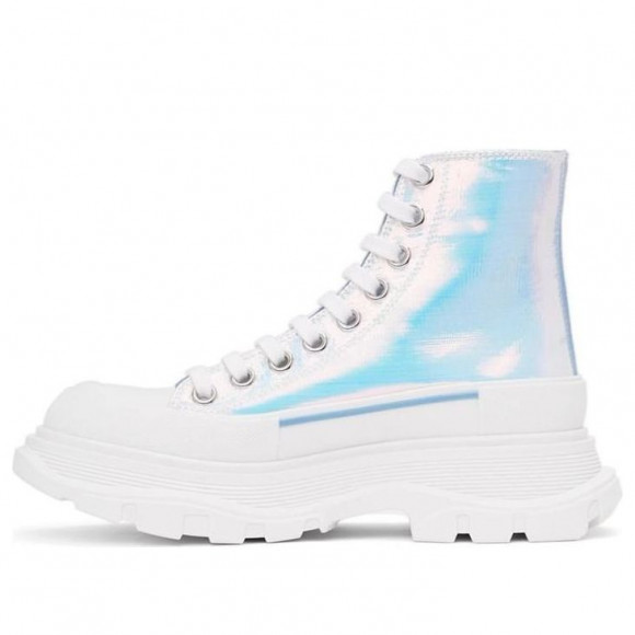 (WMNS) Alexander McQueen Silver Holographic Tread Slick Platform High Sneakers 'White Multi'