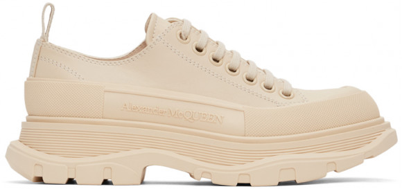 Alexander McQueen Beige Tread Slick Sneakers Out of stock Brand : Alexander McQueen Stylecode : 627225WIAG65593 Color : DARK PEARLSILV Material : Upper: leather. Sole: rubber. Gender : Man Get your hands on the Alexander McQueen Beige Tread Slick Sneakers from the best sneaker stockists around the world.