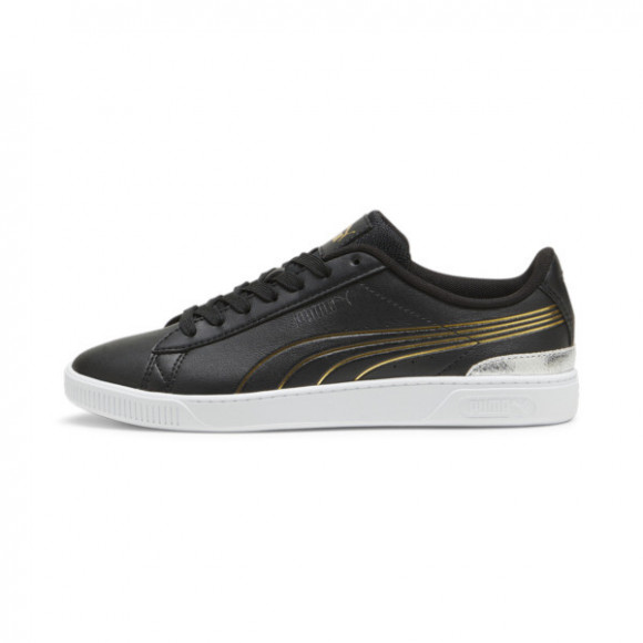 PUMA Vikky v3 Metallic Shine Women's Sneakers in Black/Gold/White Out of stock Brand : Puma Stylecode : 395085_02 Color : Black Gold White Get your hands on the PUMA Vikky v3 Metallic Shine Women's Sneakers in Black/Gold/White from the best sneaker stockists around the world.