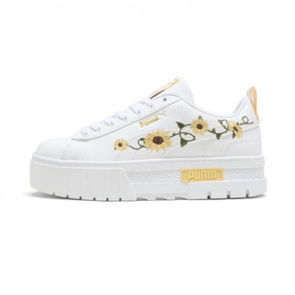 PUMA Mayze Sunflower Embroidery Women's Sneakers in White/Chocolate Esaurito nuovissimo : Puma Modella : Puma Mayze Gum Stylecode : 399642_01 Colore : WhiteChocolate Mettete le mani sul PUMA Mayze Sunflower Embroidery Women's Sneakers in White/Chocolate dai migliori rivenditori di scarpe da ginnastica di tutto il mondo.