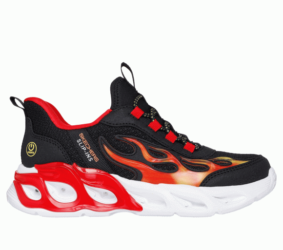 Få hånden på Skechers Boy's Slip-ins S-Lights: Thermo Flash 2.0 - Heat-Brisk Sneaker in Black/Red fra de beste sneakers-aksjeforhandlerne over hele verden.